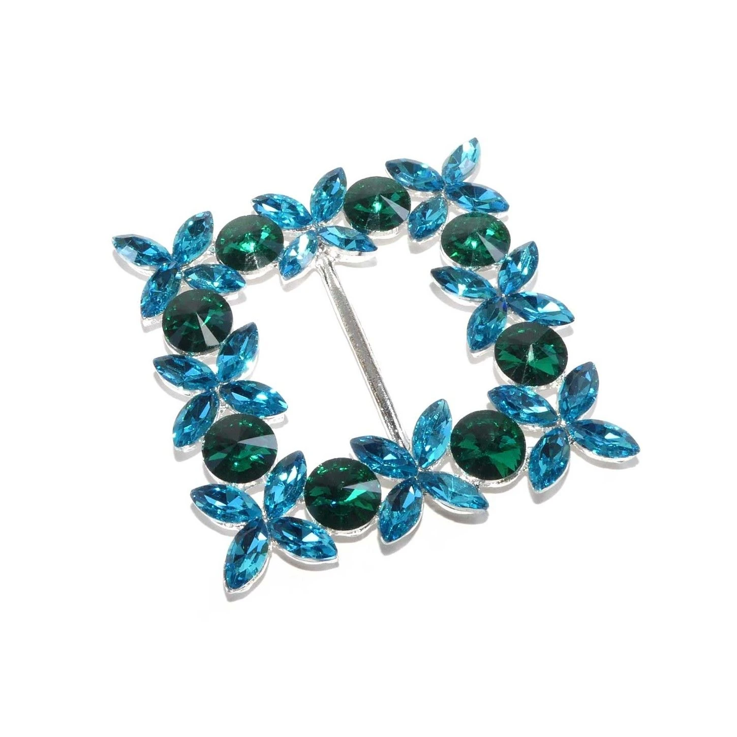 Hebilla joya de cristales en forma cónica y de aspas sobre base metálica plateada y con forma cuadrada. Con 3cm de paso para cinta y disponible en varios colores. Seleccionar el deseado a continuación.