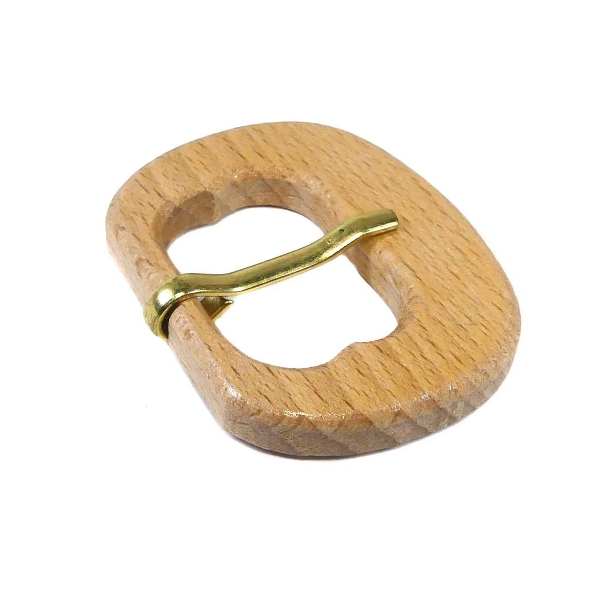 Hebilla de madera natural clásica ovalada para cinturón. Con 3cm de paso para la cinta y en color pino.