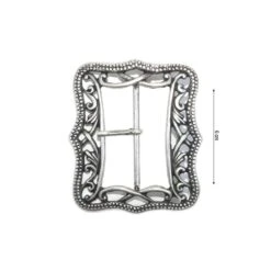 Esta preciosa hebilla de metal, está disponible en plata vieja y con medidas exteriores de 8cm de ancho y 9,3cm de alto.