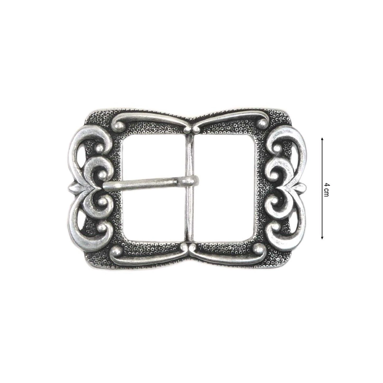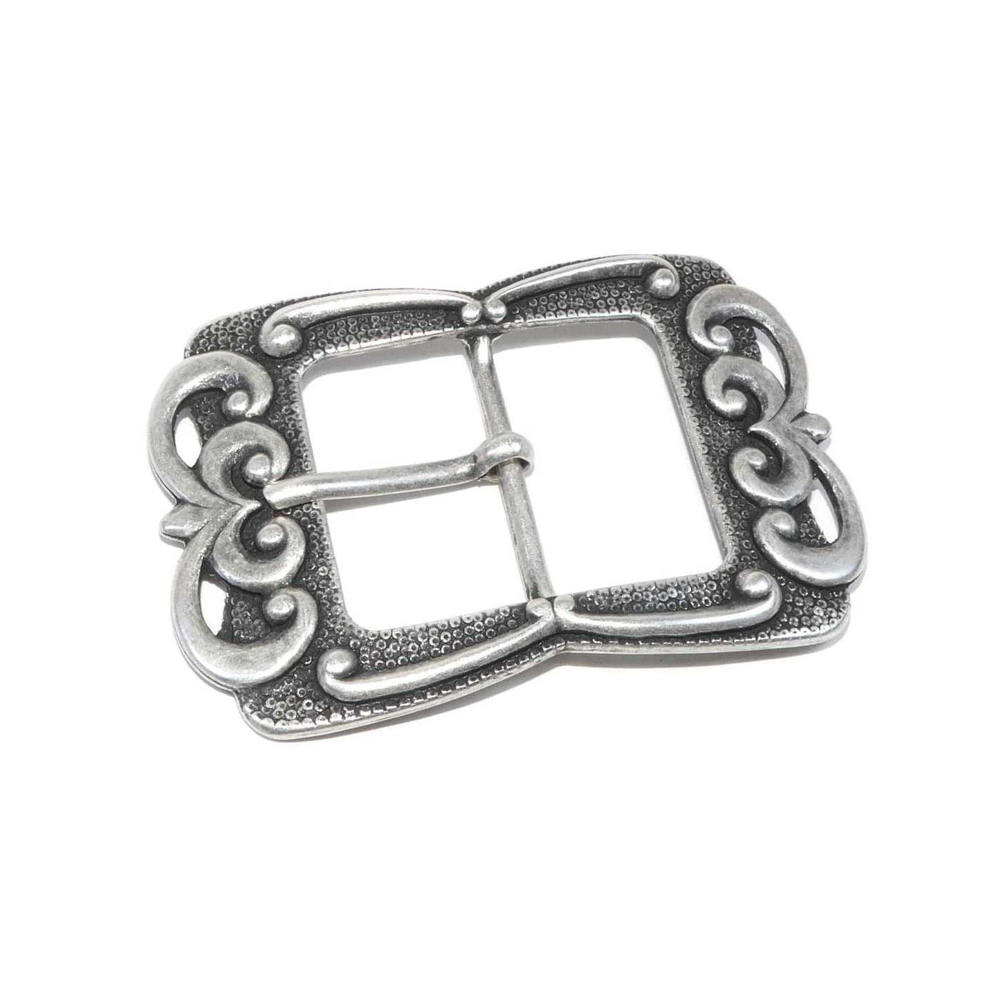 Esta preciosa hebilla de metal, está disponible en plata vieja y con medidas exteriores de 9cm de largo y 6cm de alto.