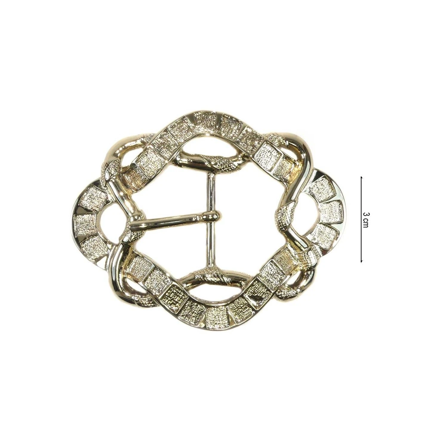 Esta preciosa hebilla de metal, está disponible en oro y con medidas exteriores de 10cm de largo y 8cm de alto.