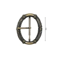 La hebilla de metal, está disponible en plata vieja y oro viejo, con medidas exteriores de 7cm de ancho y 8cm de alto.