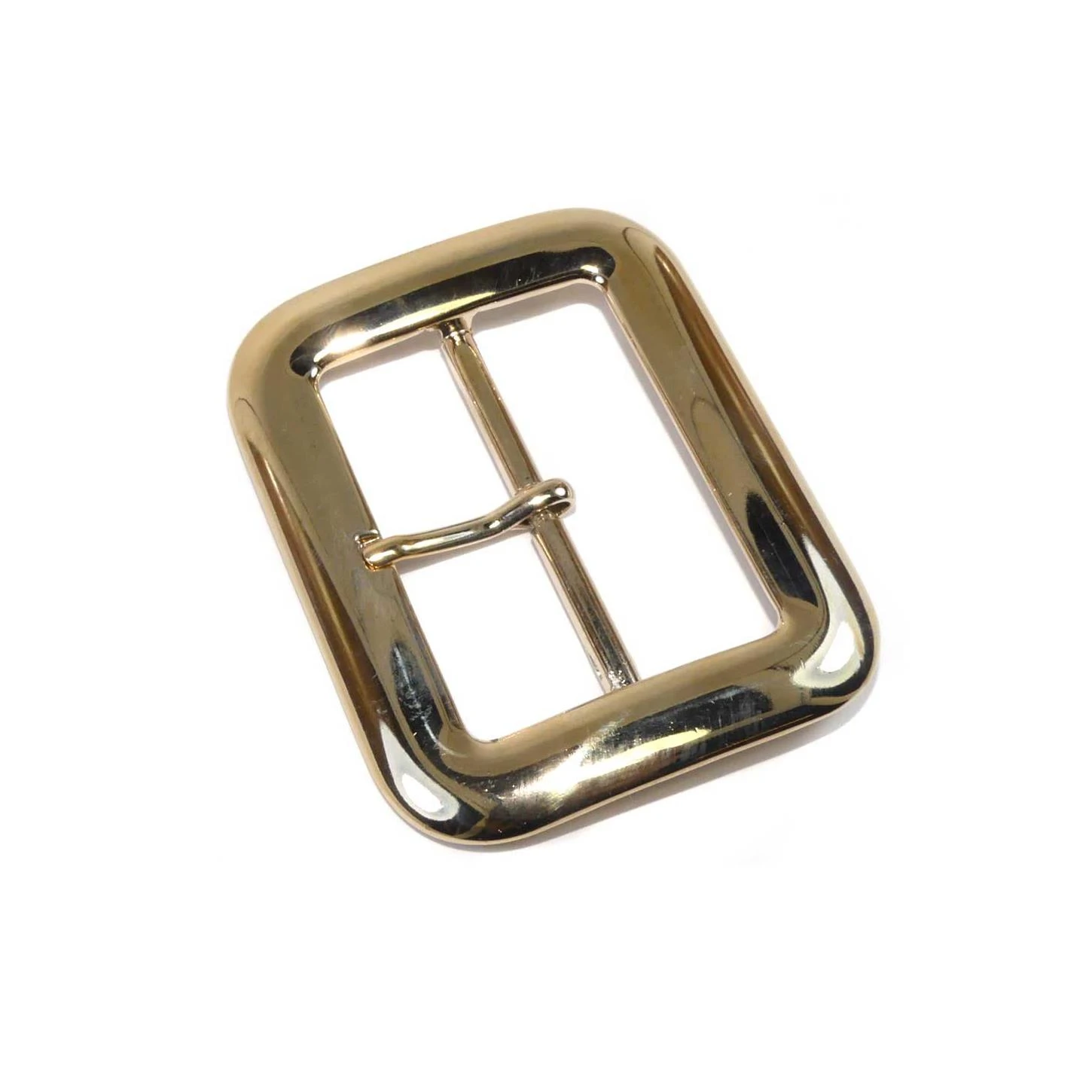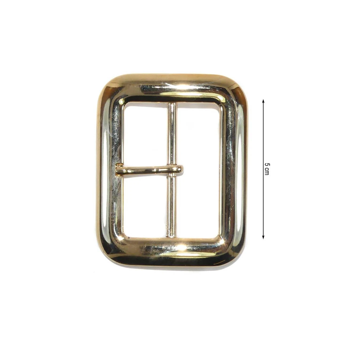 Hebilla metálica clásica rectangular y biselada en sus esquinas con 5cm de paso para la cinta, disponible en color dorado.