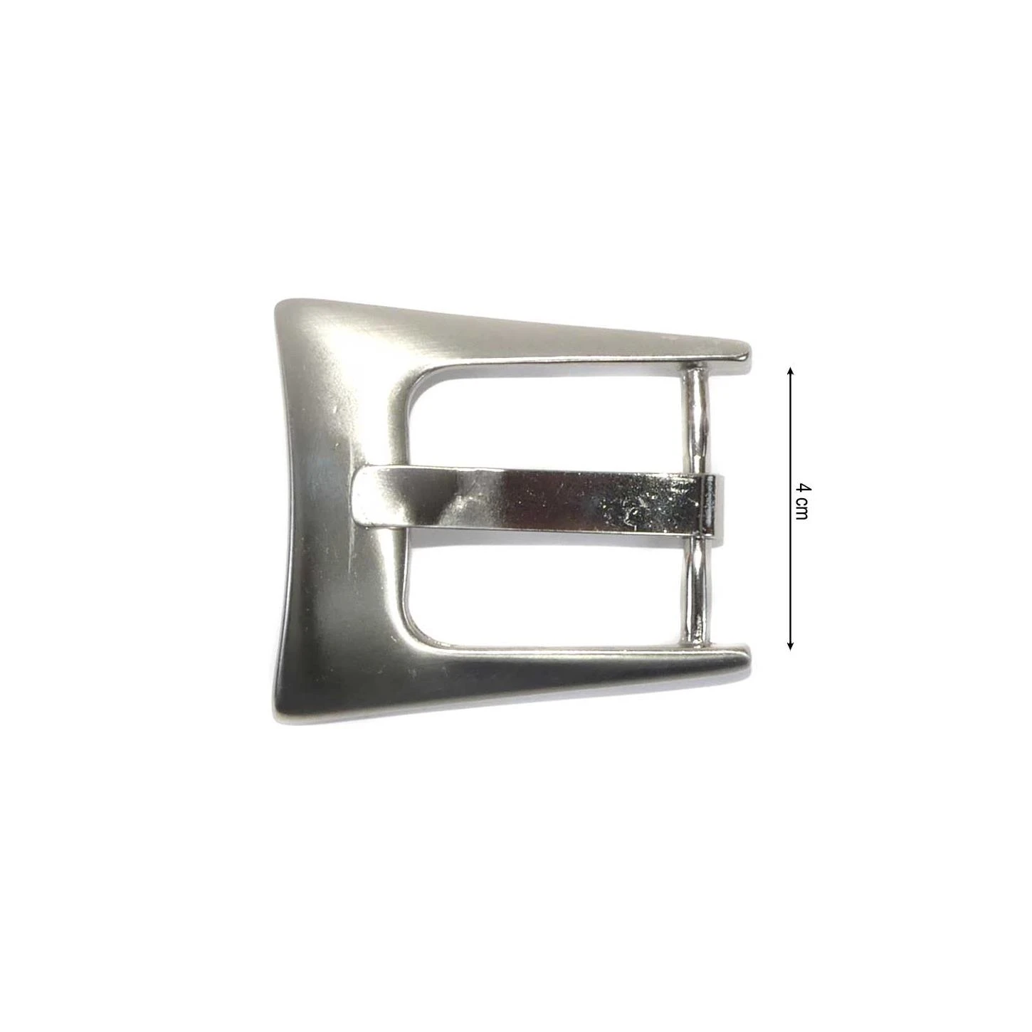 Hebilla metálica rectangular para cinturón muy original, con gancho ancho y de color plata satinado. Con 4cm de paso para la cinta.