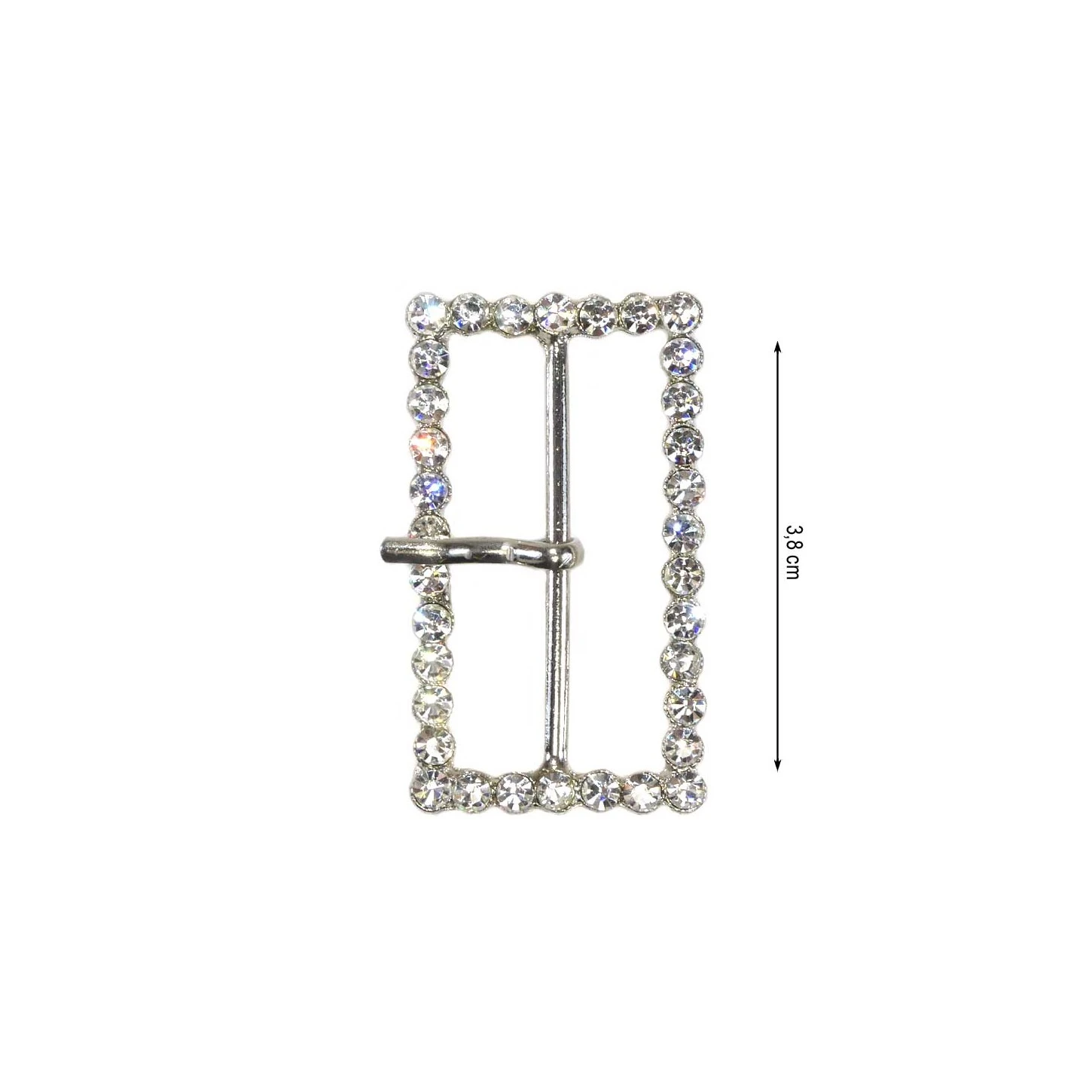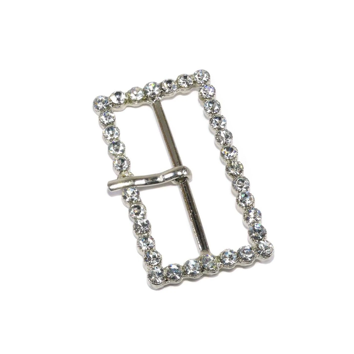 Esta hebilla metálica tiene forma rectangular e incluye a lo largo de todo su diseño strass o pequeños cristales con los que conseguirás un efecto increíble en tus prendas.