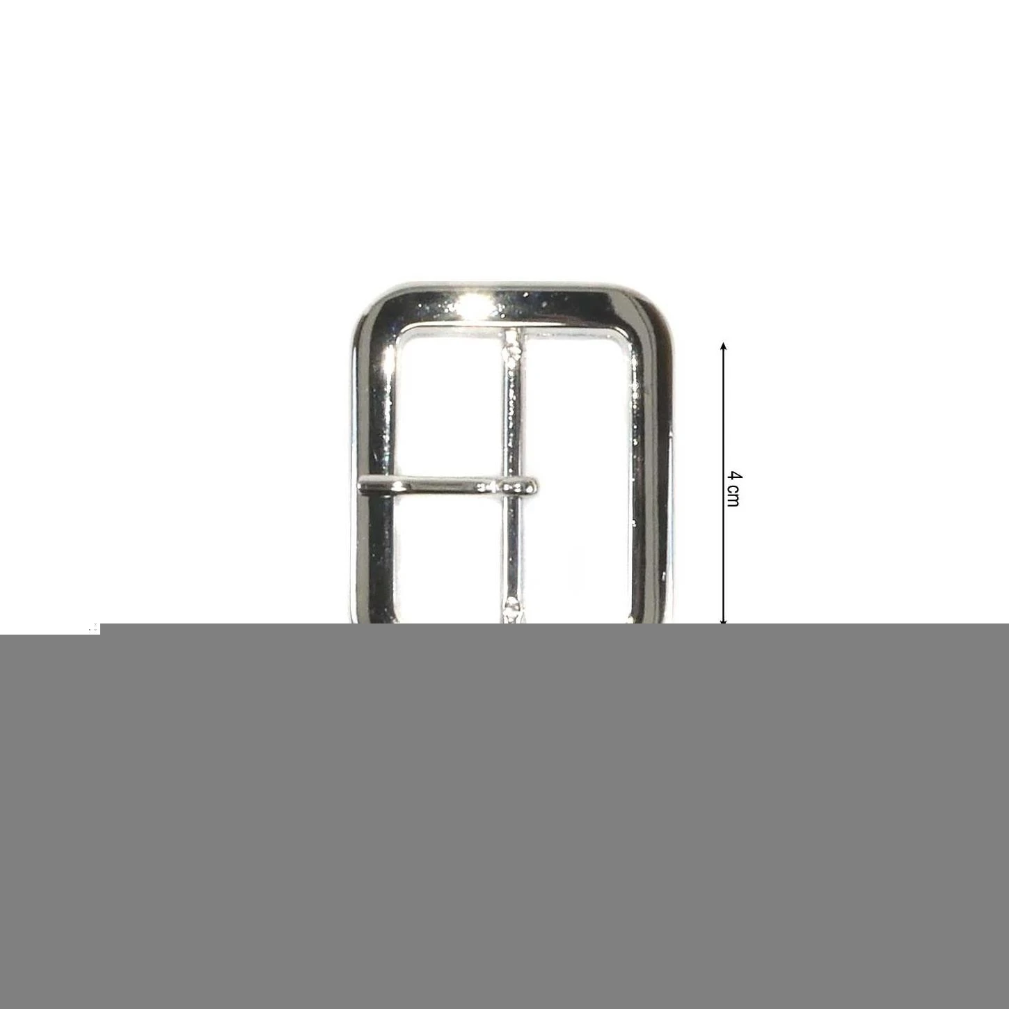 Hebilla clásica rectangular y biselada realizada en metal en color plata y con 4cm de paso para la cinta. De dimensiones 4,5cm de ancho y 5,5cm de alto.