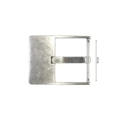 Hebilla metálica original rectangular con 4,5cm de paso de cinta y con pala ancha. Disponible en plata vieja y oro viejo. Seleccionar el color deseado a continuación.