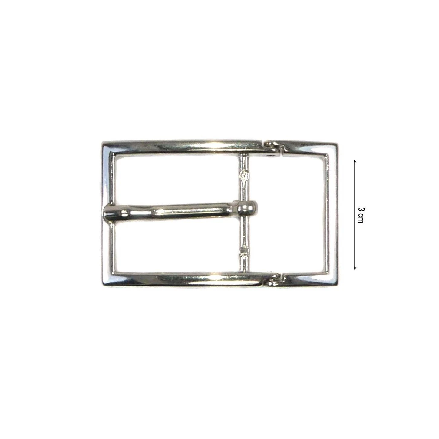 Hebilla metálica con pasador móvil en forma rectangular en color plata y con 3cm de paso de cinta.