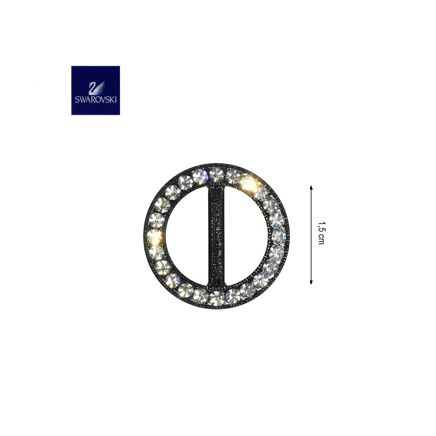 Hebilla redonda negra, con strass blanco y de 1,5cm de paso para la cinta.