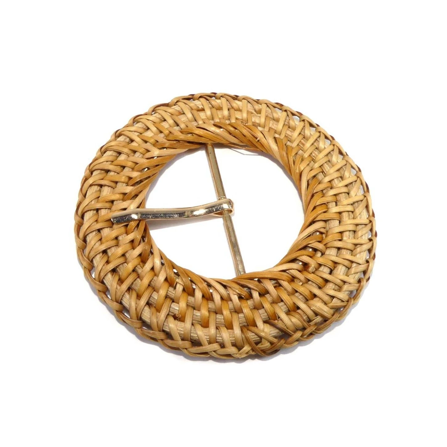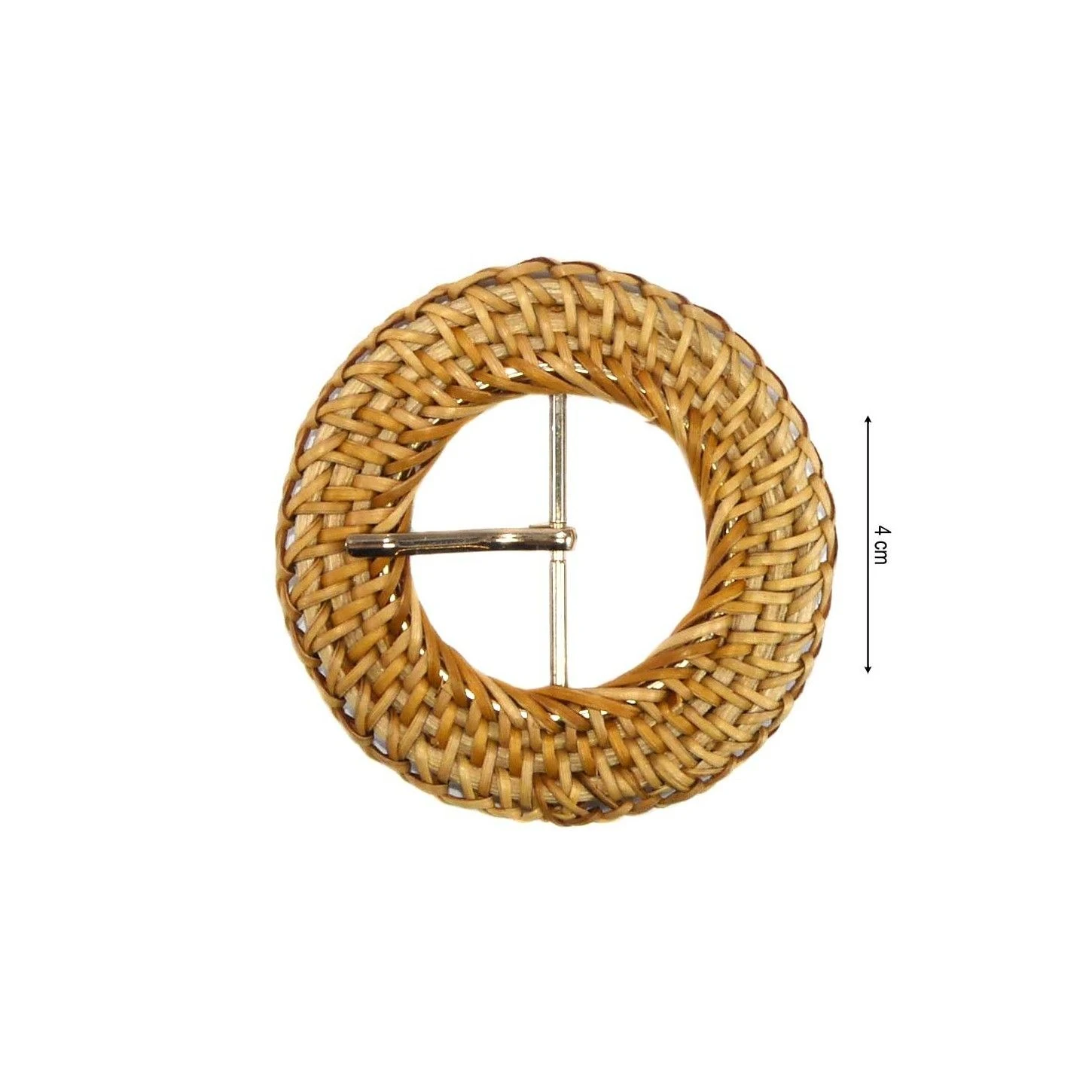 Hebilla de rafia redonda con 4cm de paso para la cinta y 7,8cm de diámetro. Disponible en color natural y negro. Seleccionar el deseado a continuación.
