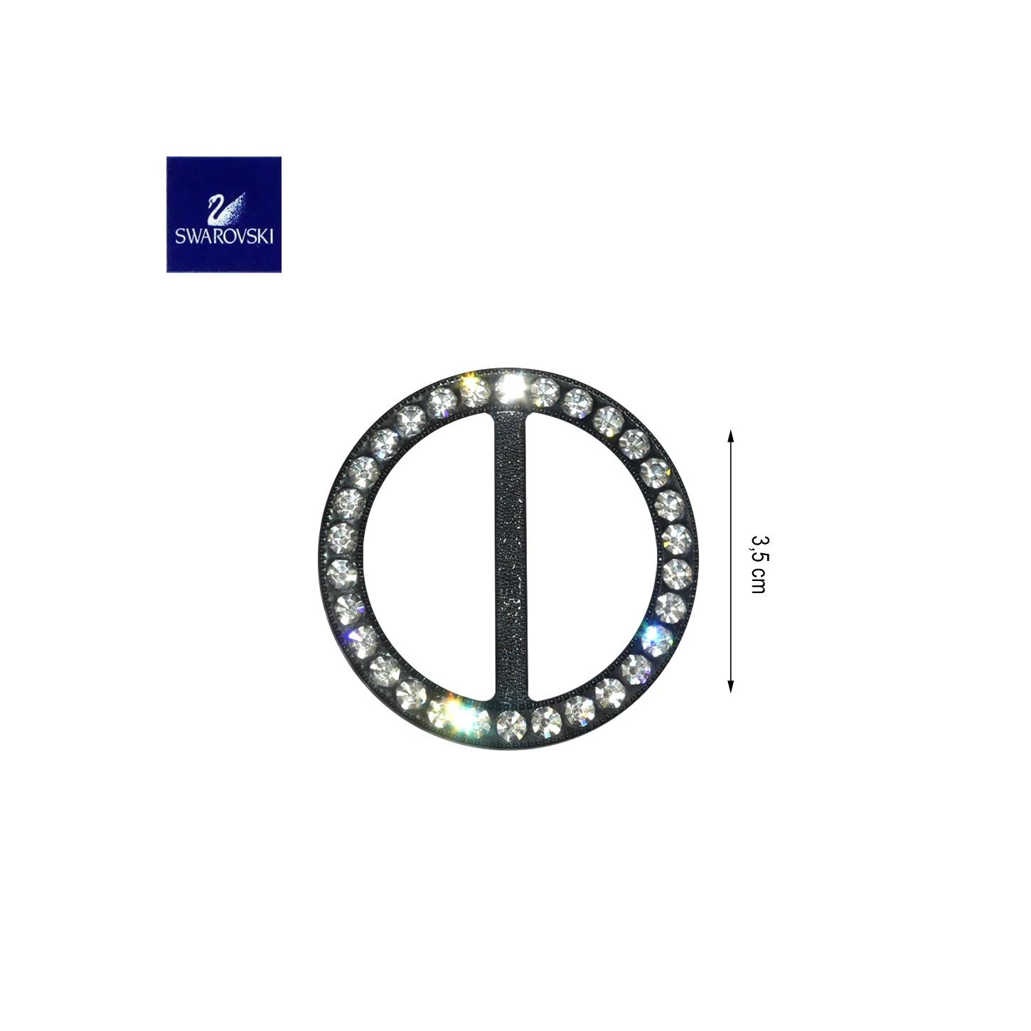 Hebilla redonda negra, de strass blanco y con 3,5cm de paso para cinta.