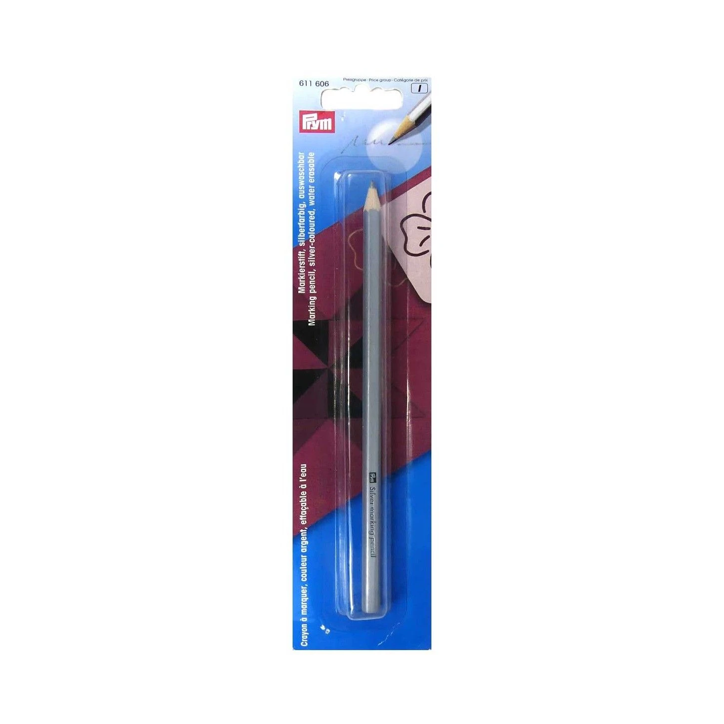Lápiz para marcar tela en plata para tejidos oscuros normalmente. Se borra preferiblemente con agua.