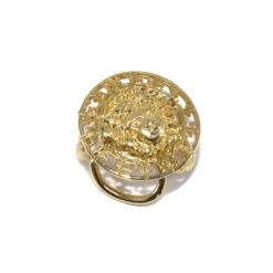 Pasador para pañuelo original en color metalizado dorado y diseño con cabeza mujer veneciana. De 3cm de diámetro.