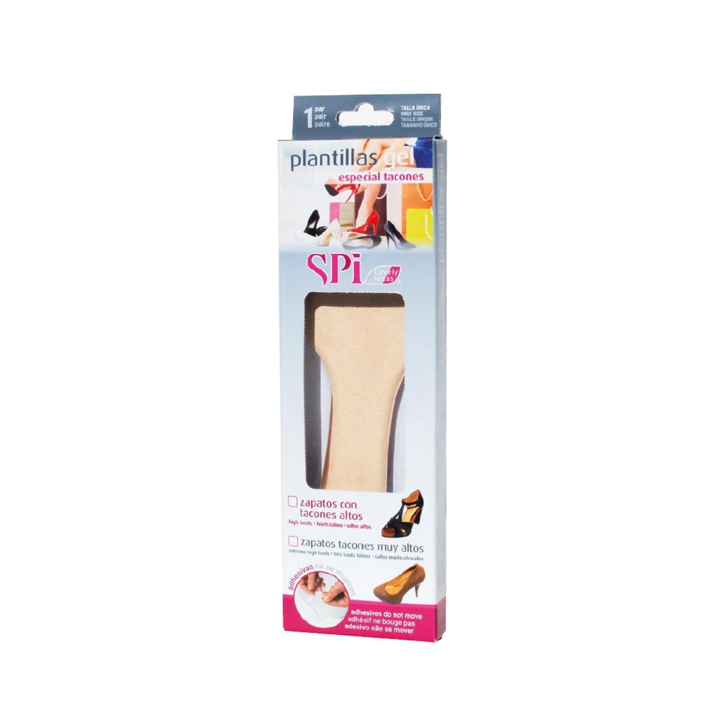 Plantillas de gel forradas especiales para zapatos y sandalias de tacón alto. Confortables, adherentes y antideslizantes de 19cm de longitud y 7cm de ancho en la zona de los dedos.