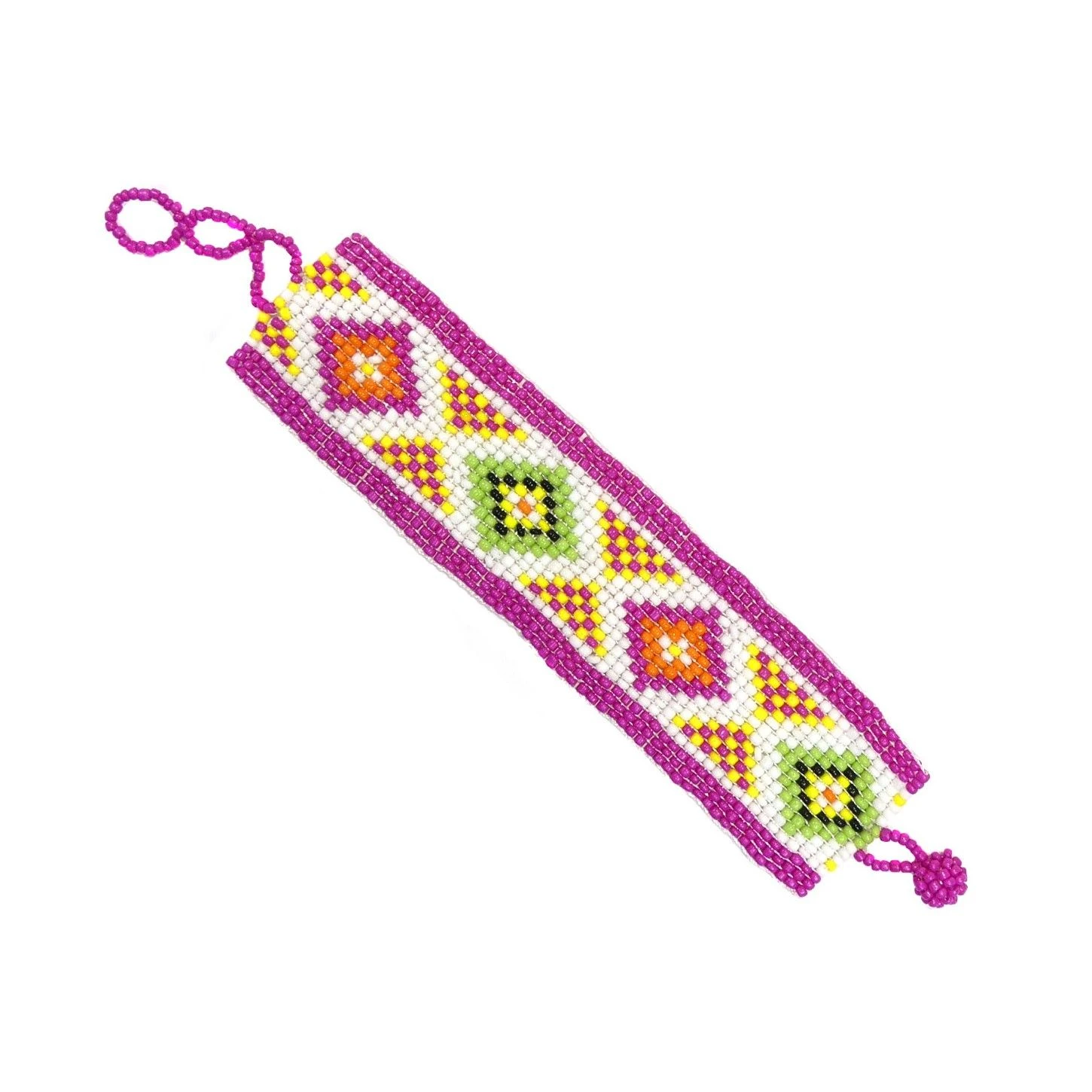 Aplicación étnica con forma de pulsera multicolor. De 21cm de largo y 3,5cm de ancho, en forma rectangular y estampado geométrico. Realizada con piezas de rocalla multicolor. Seleccionar el modelo deseado a continuación.