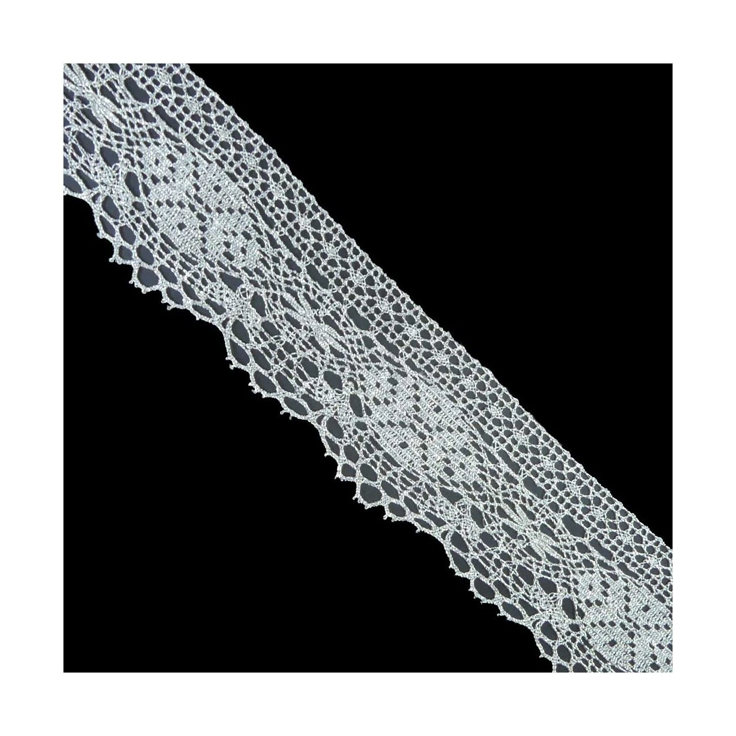 De 5cm de ancho total realizada con hilo metalizado en plata u oro.