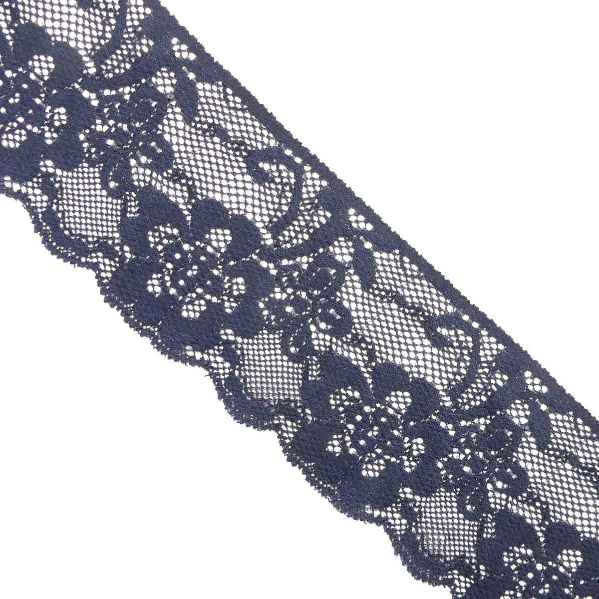 Puntilla de nylón elástica, con una elasticidad media del 150%. De 7cm de ancho y muy suave al tacto. Puede lavarse sin problemas hasta los 40º, admite plancha y se recomienda no introducir en secadora.