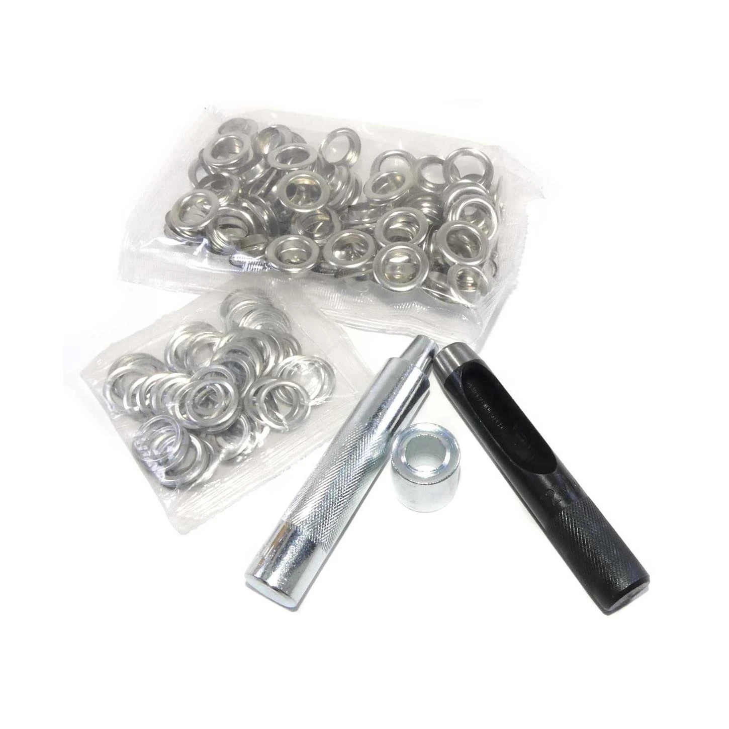 3. Colocar la arandela encima del ollao ya introducido, situar el ensamblador sobre el mismo y golpear.