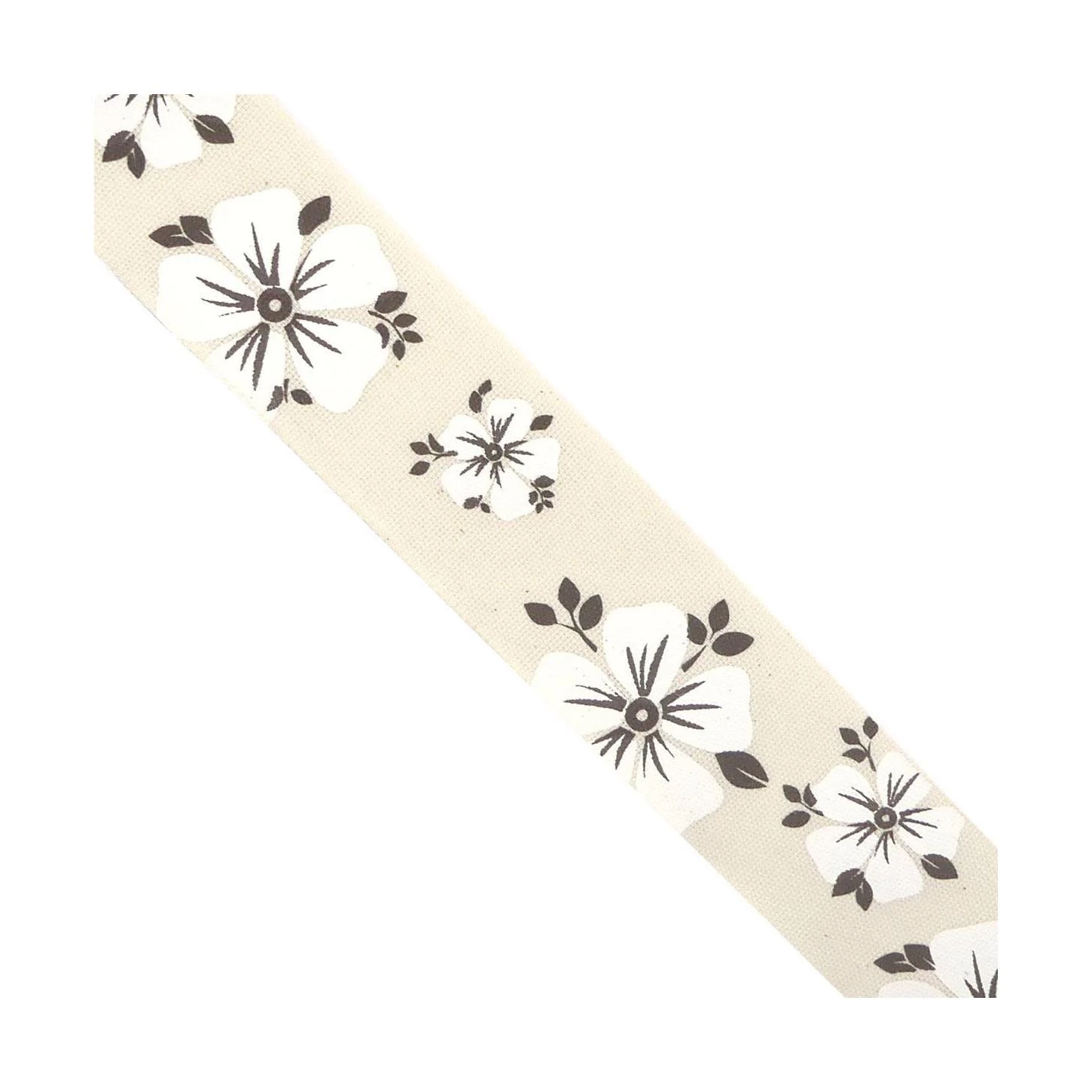 Cinta tapacosturas o cubrecosturas de algodón, estampada con motivos florales. La cinta tiene un ancho total de 4cm y está compuesta por 100% algodón.
