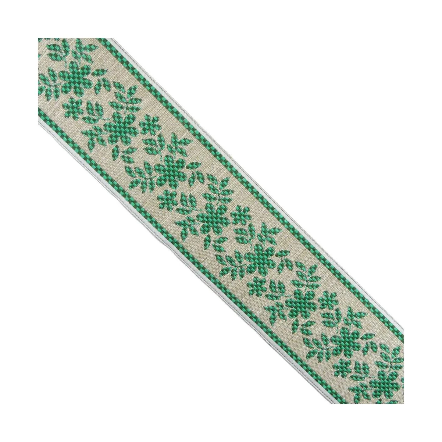 Cinta tapacosturas o cubrecosturas de lino, bordada y estampada con motivos florales simulando una cenefa y de ancho total 5cm. Disponible en dos colores. Seleccionar el deseado a continuación.