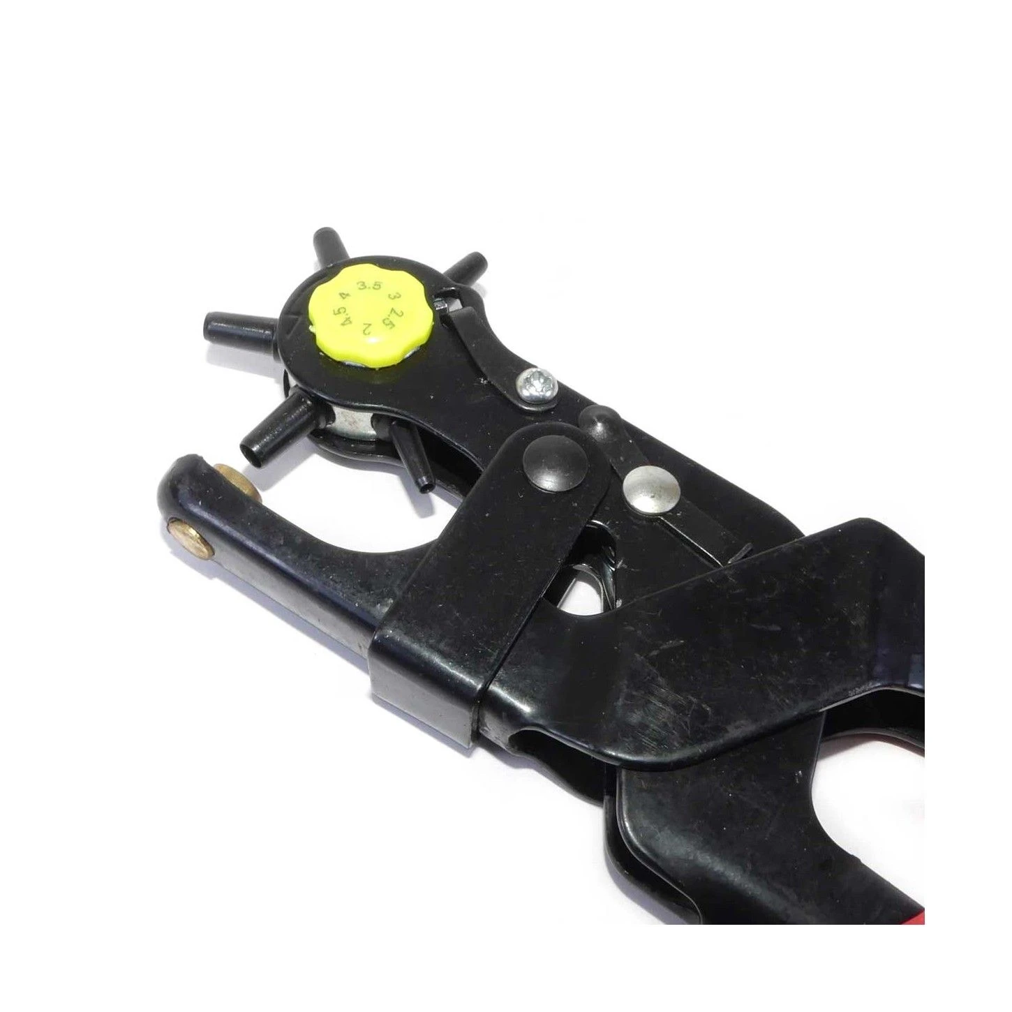 Alicate o tenaza perforadora-sacabocados de alta gama, con mango siliconado rojo y con diferentes 6 posiciones y diámetros de perforación.