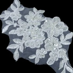 Aplicación Bordada Pareja Flores Guipur Y Perla. Varios Colores