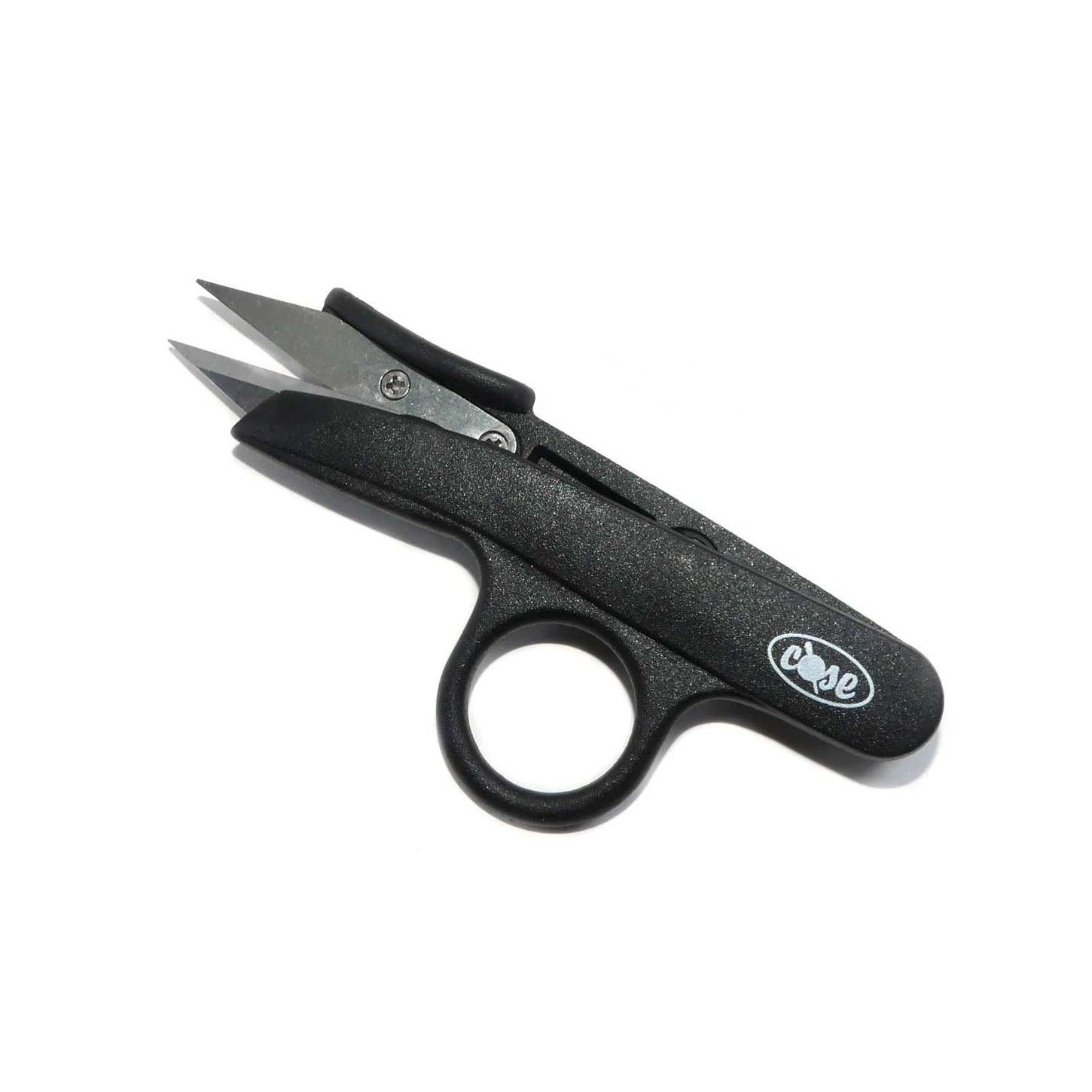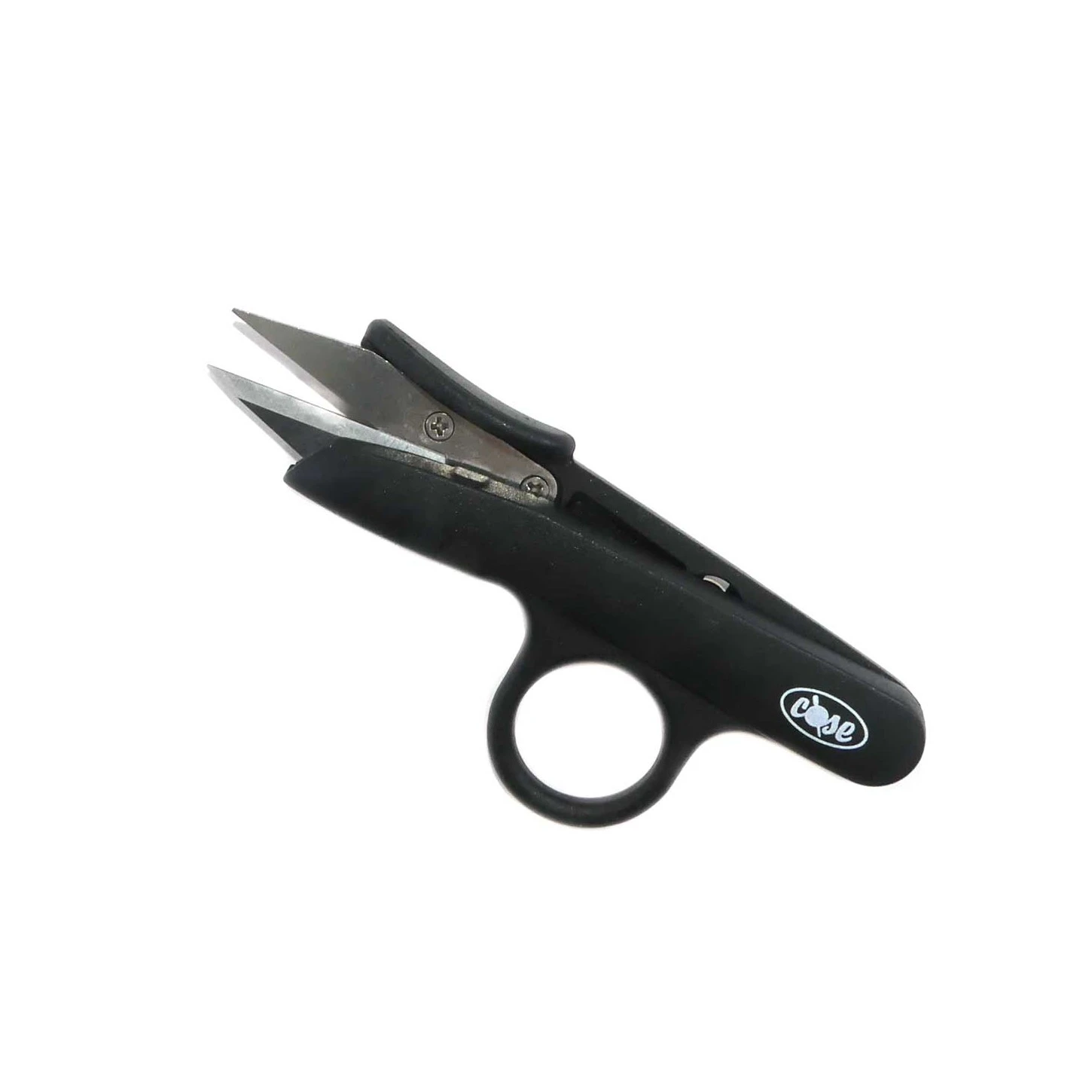 Tijera específica para cortar hilos realizada en acero de alta calidad con mango plástico negro, que incorpora anilla para dedo, facilitando el manejo de la herramienta. La longitud total es de 12,5cm.