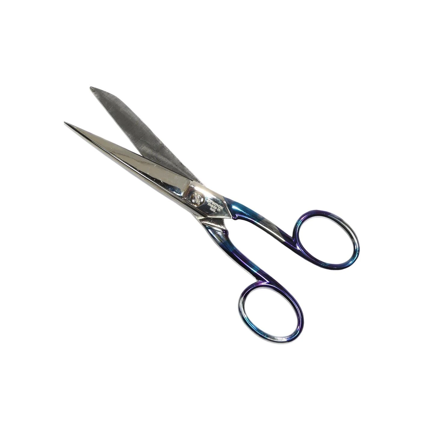 Tijera de acero de la marca Premax, con mango irisado y de 15cm de longitud.