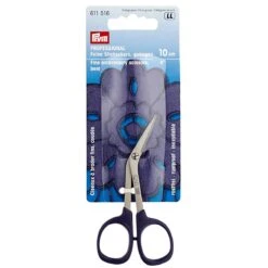 Tijeras para bordar, de acero inoxidable de alta calidad y mango plástico suave y ergonómico. Con la punta recta pero diseño curvo y de 10cm de longitud.