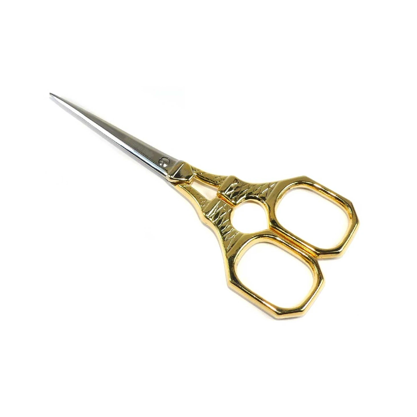 Tijeras para bordar con la forma de la torre Eiffel con acabado en oro y punta recta en pico. De 10m de longitud de la marca Premax.