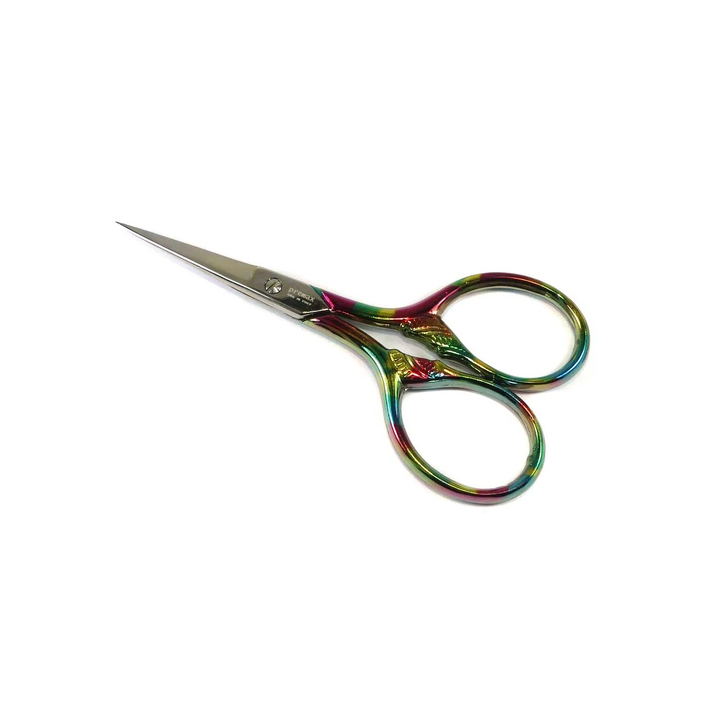 Tijeras para bordar de acero de alta calidad, con punta fina y estampada en colores. De 9cm de longitud y de la marca Premax.