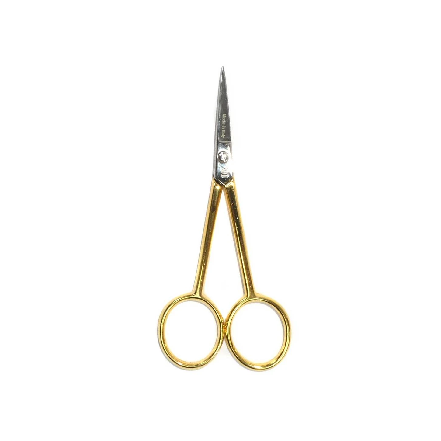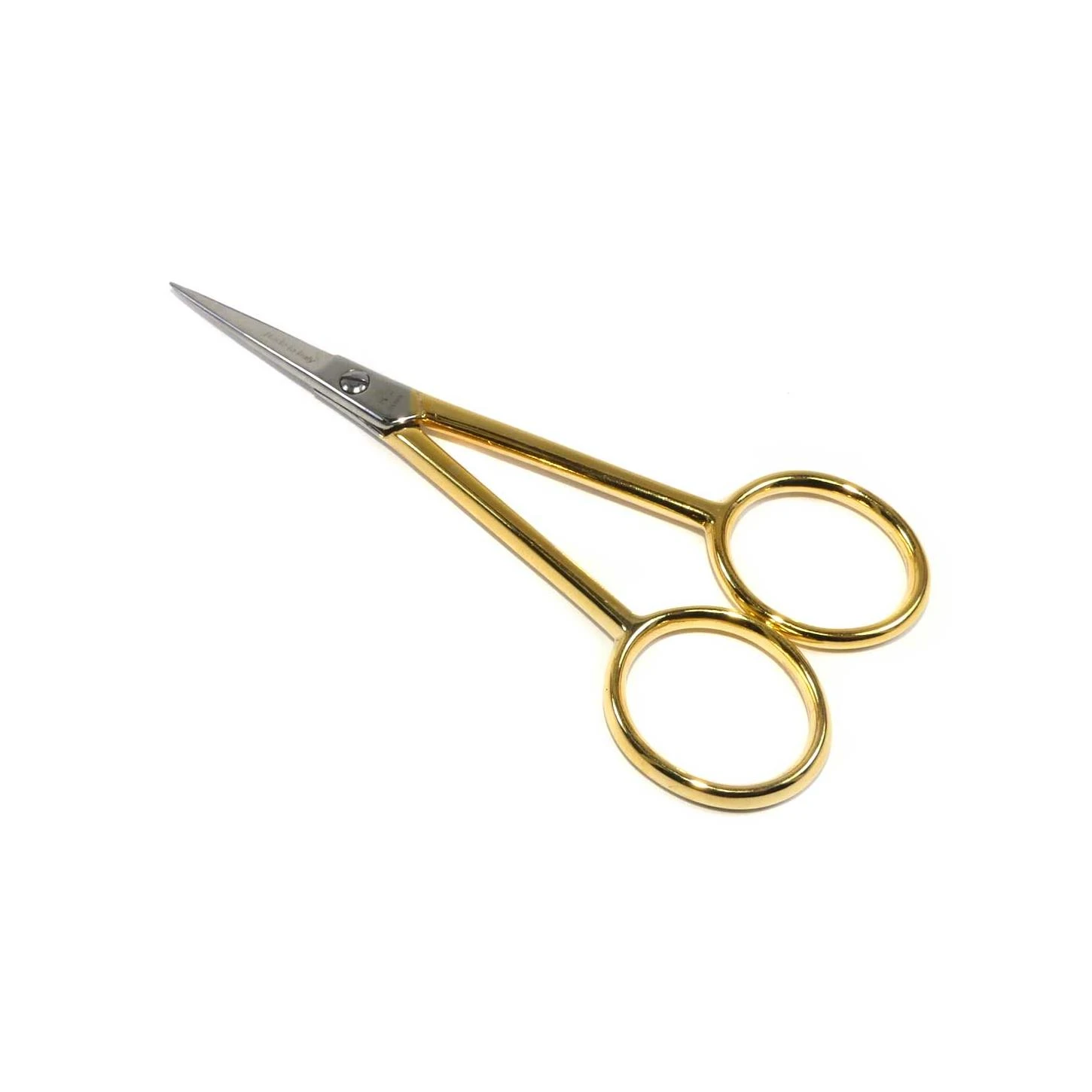 Tijera para bordar y otras labores, con diseño recto y punta recta, con lacado en color dorado. De 10,5cm de longitud.
