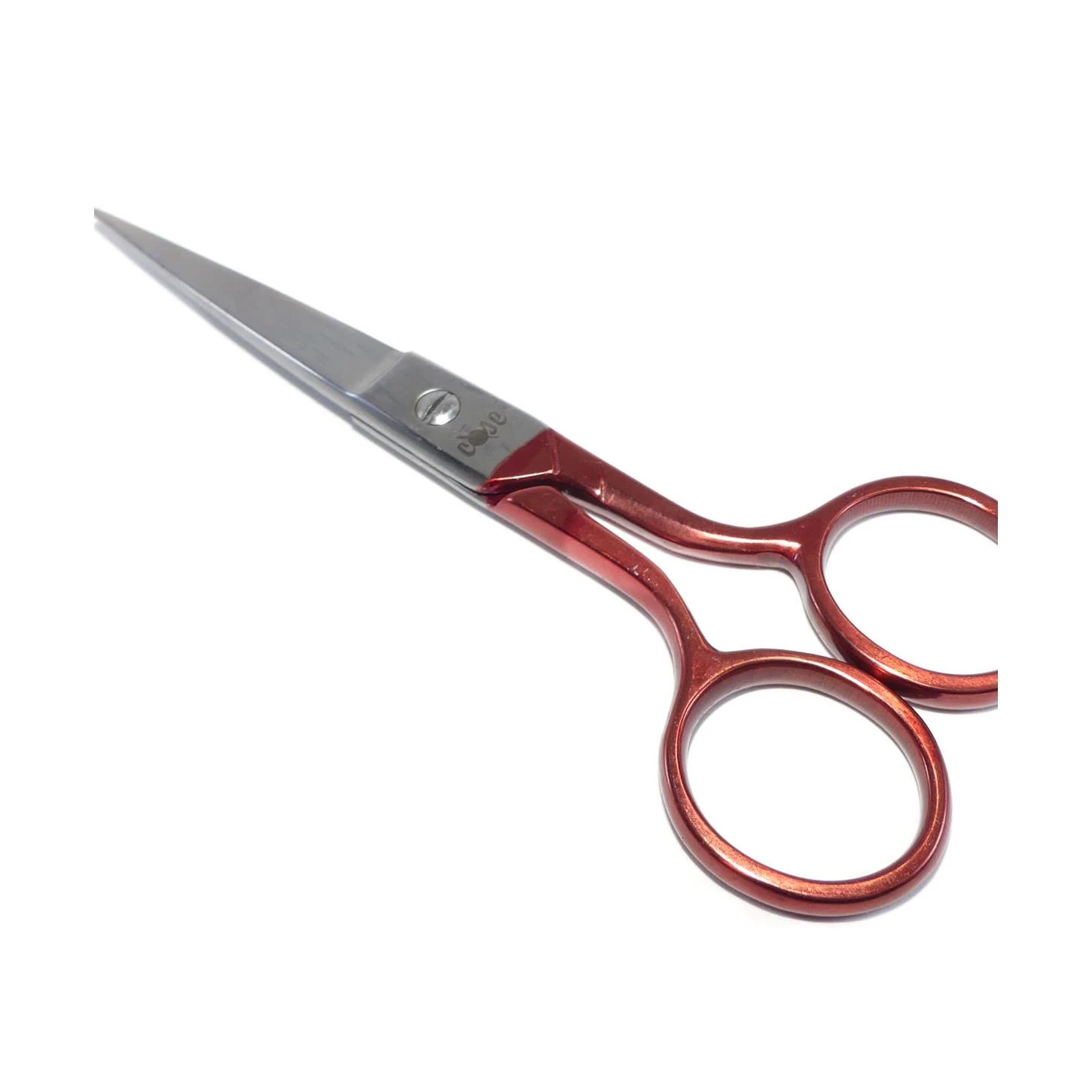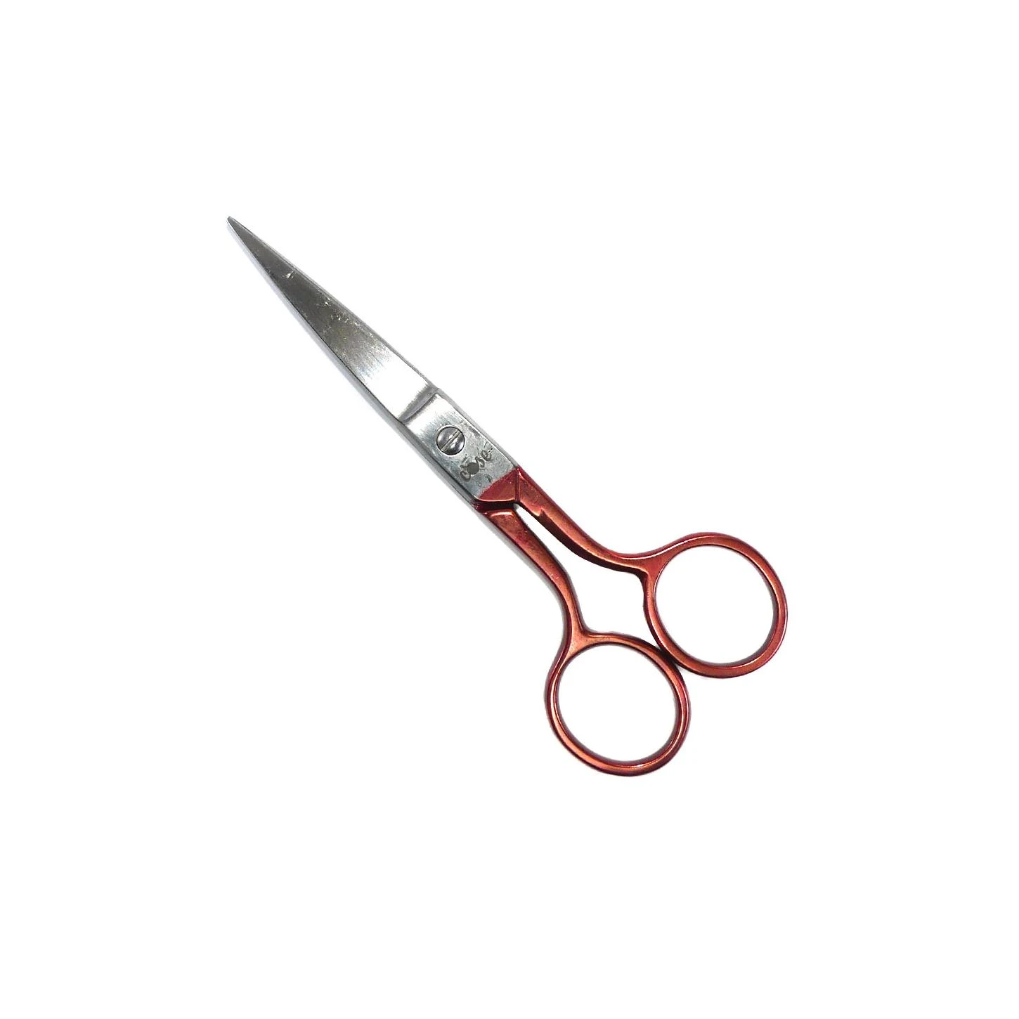 Tijera de acero inoxidable con mango lacado en rojo muy adaptable a la forma de la mano y con corte limpio. De 6″ (15,2cm).