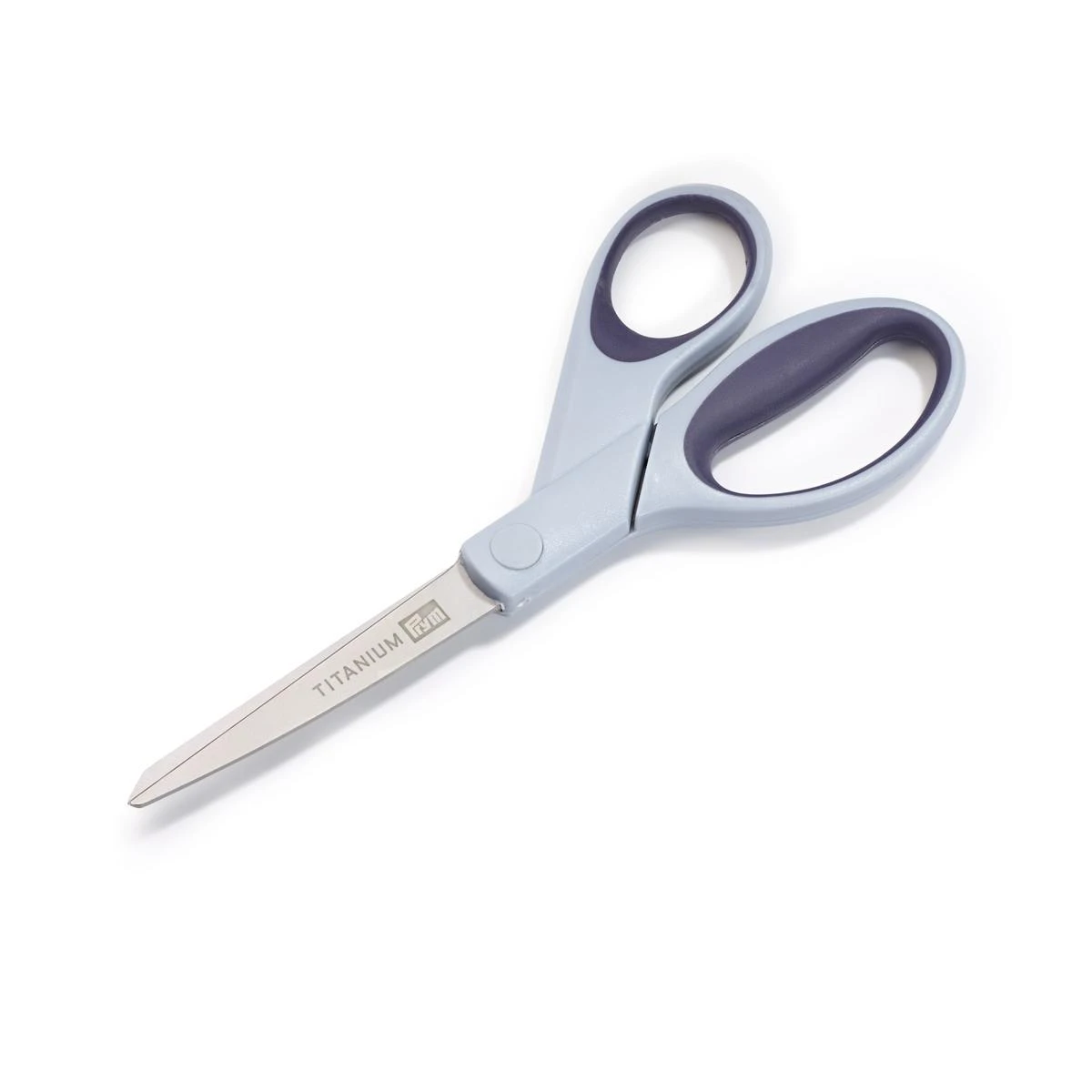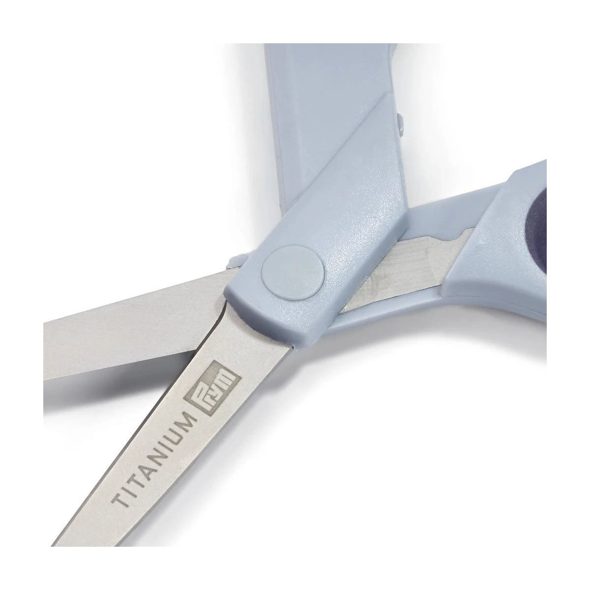 Tijera de acero Titanium de 20,3cm de longitud (8 pulgadas), con mango ergonómico muy adaptable a la forma de la mano y con corte limpio. De la marca Prym.