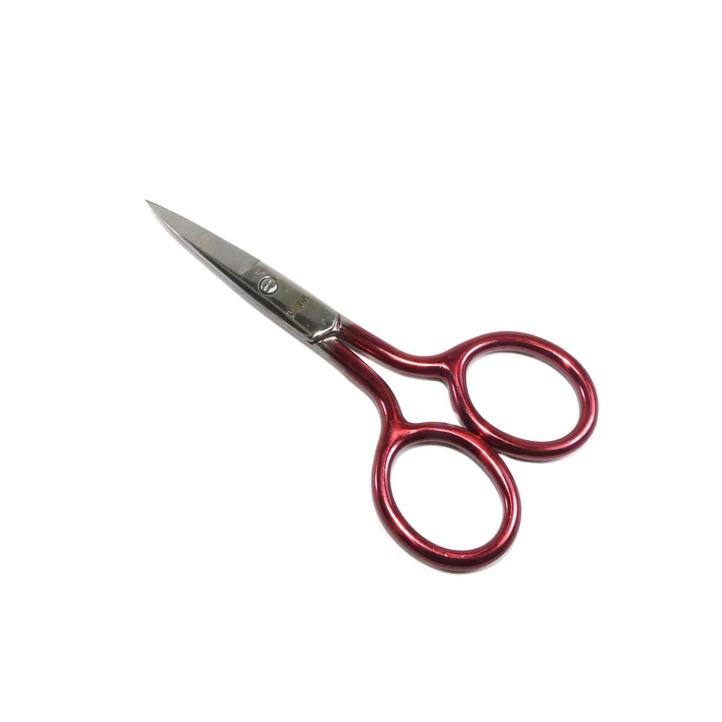 Tijera para labores y costura con mango lacado en rojo metalizado muy adaptable a la forma de la mano y con corte limpio. De 9,5cm de longitud.
