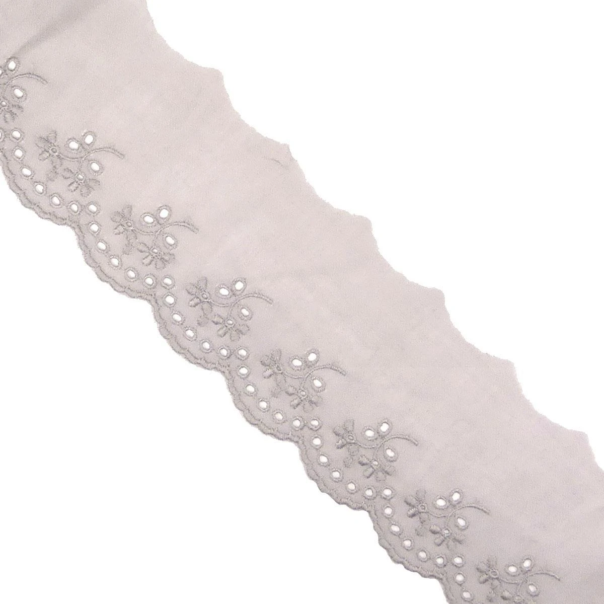 Preciosa tira bordada en varios colores y realizada en 100% algodón. Tiene un ancho total de 5,5cm y un diseño floral y terminación en ondas.