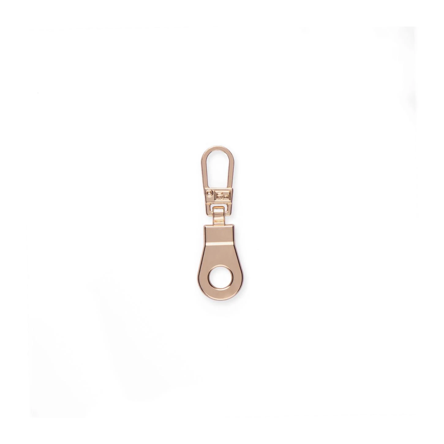 Tirador para cursor de cremallera en metal de color metalizado oro rosa con diseño clásico y práctico para su uso. De la marca Prym.