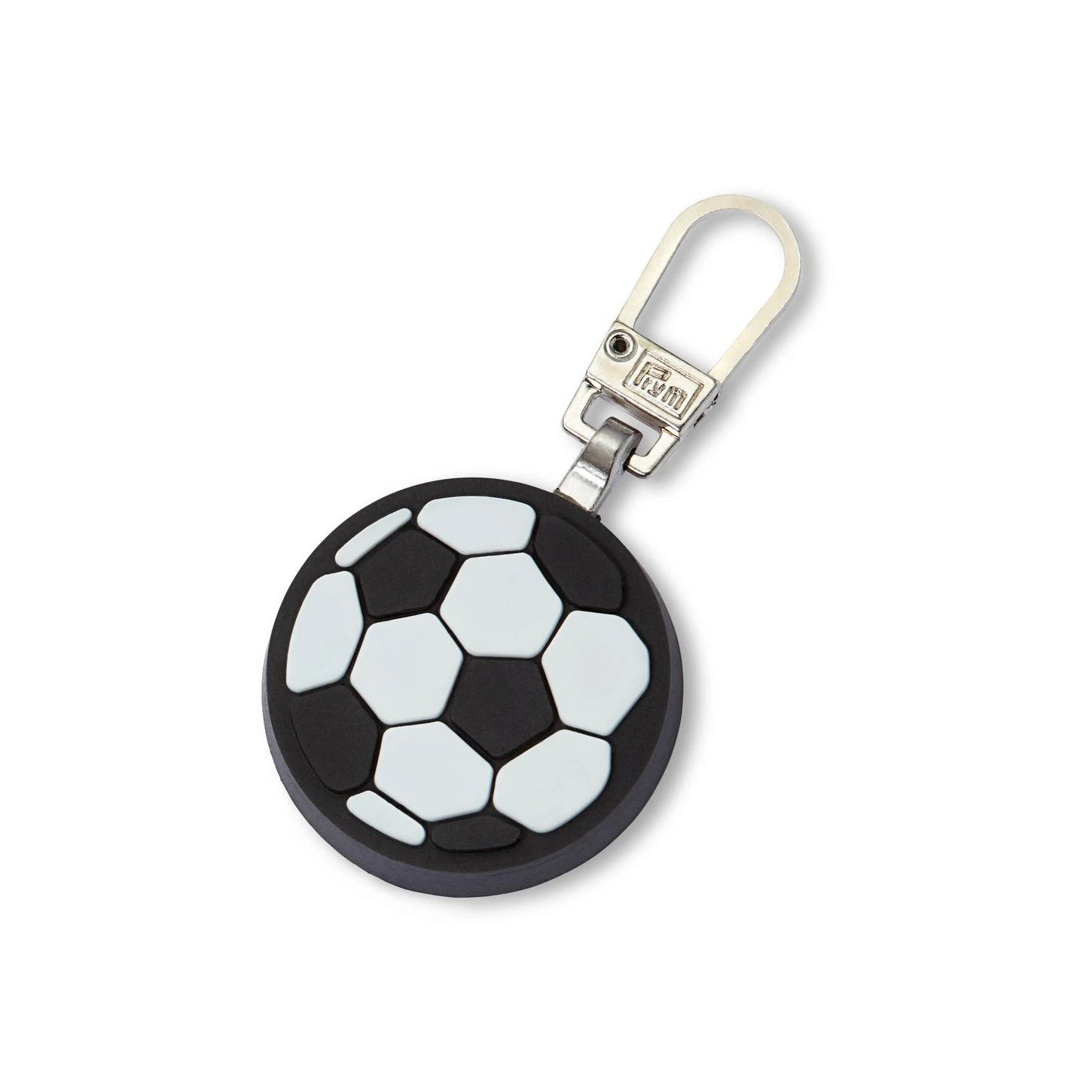 Original tirador para cursor de cremallera con diseño de un balón de fútbol en blanco y negro.