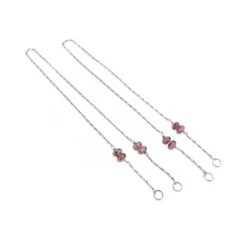 Dos tirantes de 40cm de largo compuesto por cadena metalizada fina en color plateado y pequeñas piezas en imitación a piedra de color incorporadas en el diseño.