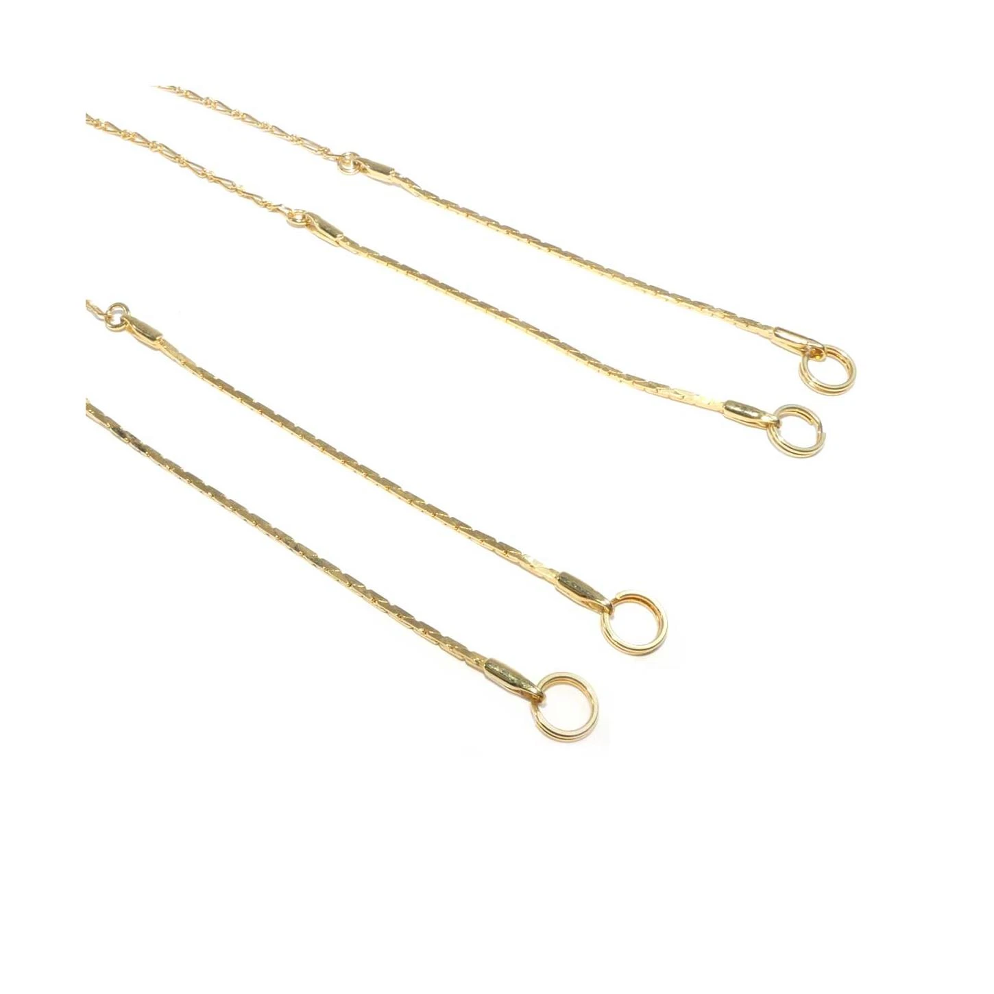 Dos tirantes de 40cm de largo compuesto por dos tipos de cadena metalizada fina.