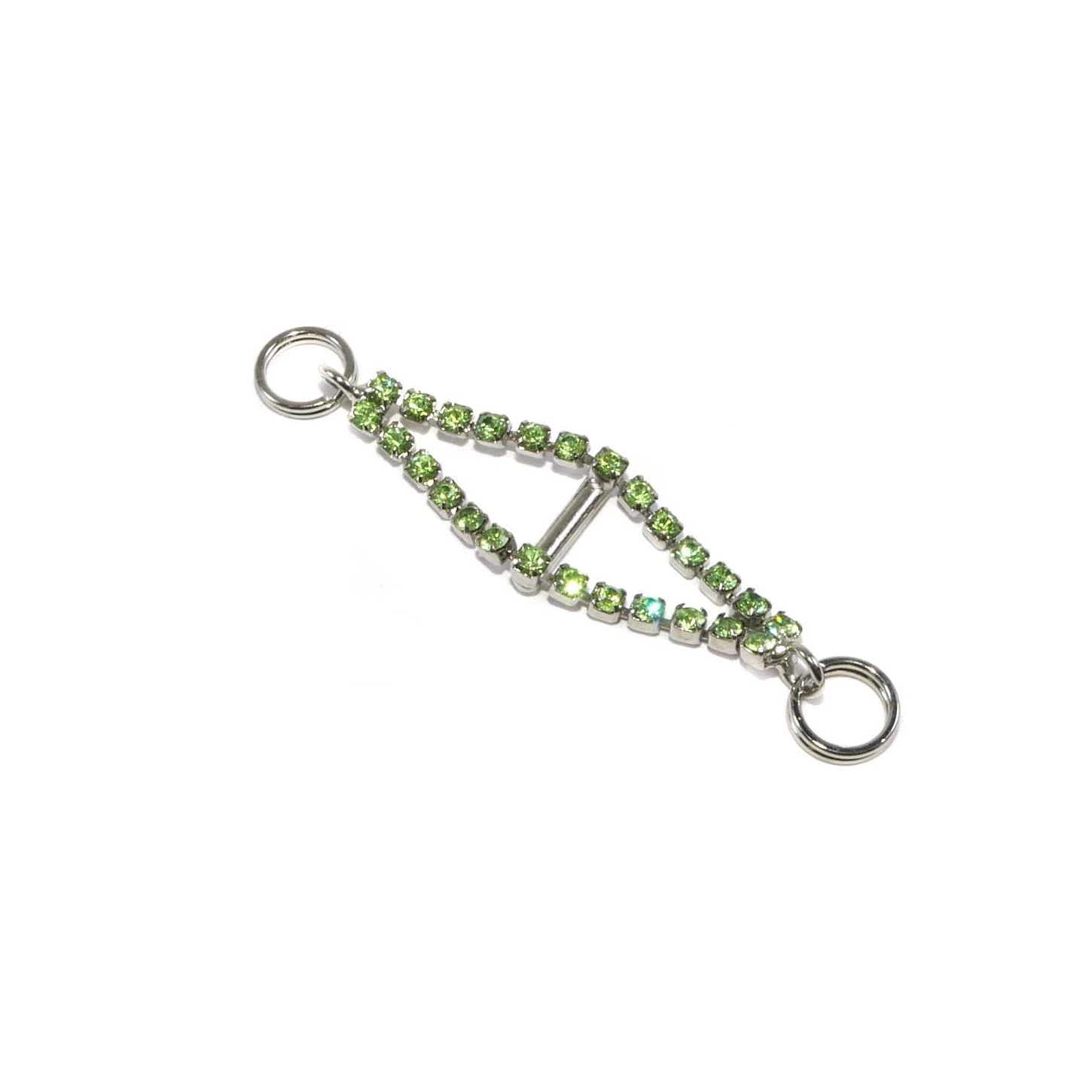 Trabilla metalizada en plata, con forma de rombo formado por cadena con cristales engarzados de color. La longitud es de 5cm y está disponible en varios colores. Seleccionar el deseado a continuación.