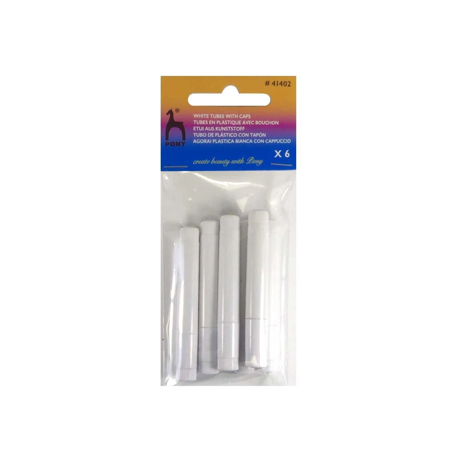 Seis tubos para guardar alfileres y agujas con forma tubular de color blanco.